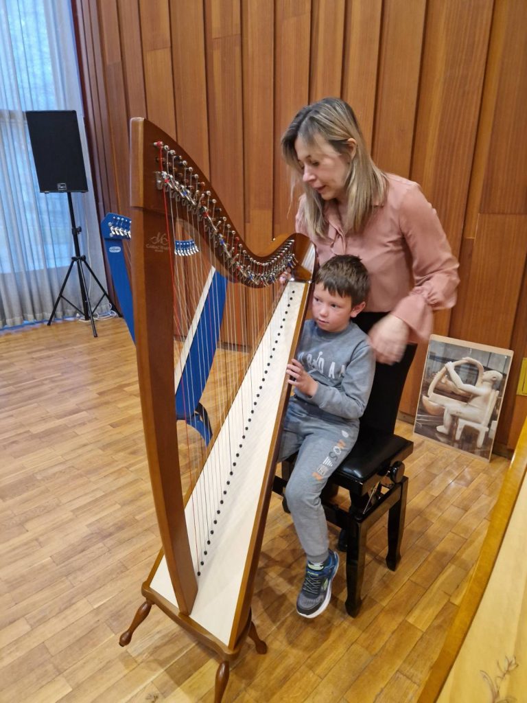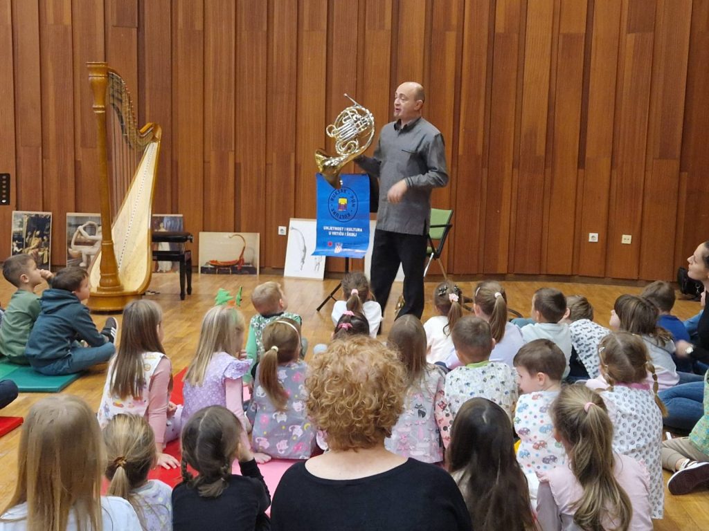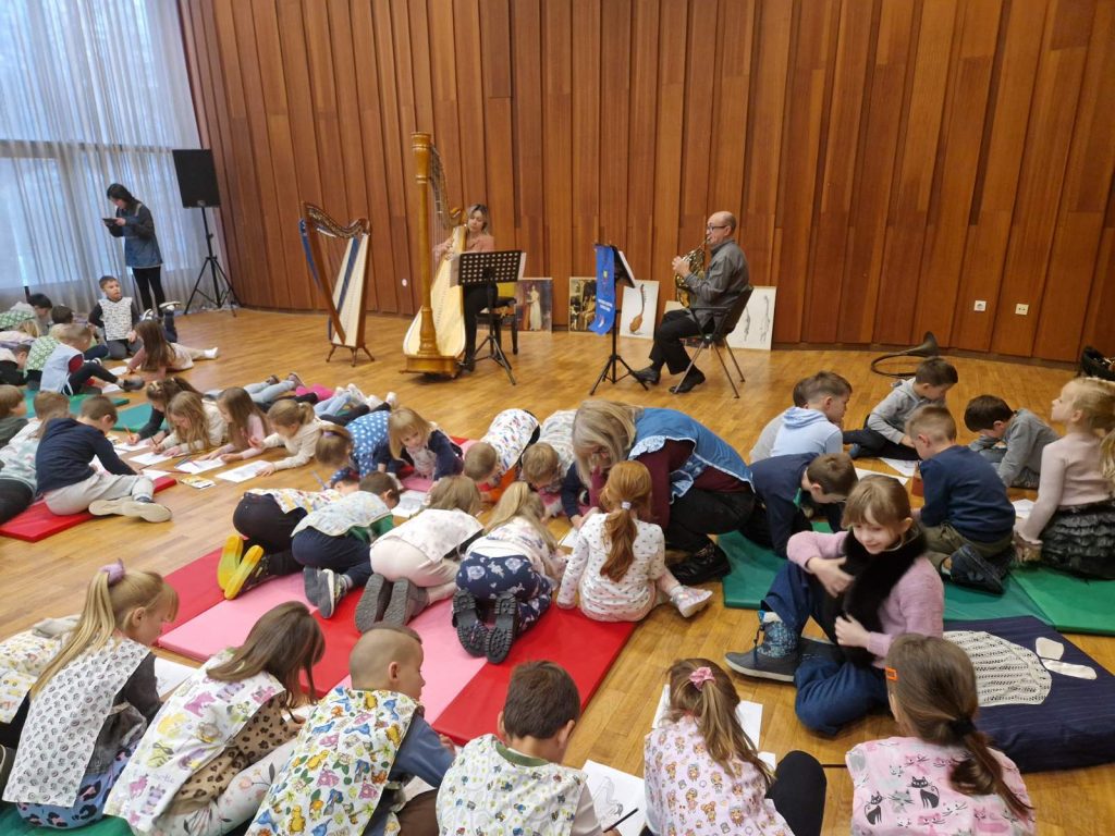 Danas 24.11.2025. održan je interaktivni koncert harfe i popratnih puhačkih instrumenata za djecu predškolskog uzrasta. Koncert je dogovoren u sklopu projekta Ruksak (pun) kulture kojemu je cilj poticanje djece i mladih na razumijevanje i usvajanje umjetnosti u dislociranim te prometno slabije povezanim područjima Republike Hrvatske. Osim predivnih izvedbi na čarobnoj harfi, djeca su imali priliku čuti o povijesti tog instrumenta, likovno se izraziti uz glazbene točke i sami isprobati svirati ponuđene instrumente. Ponedjeljak za pamćenje, zar ne? 🙂