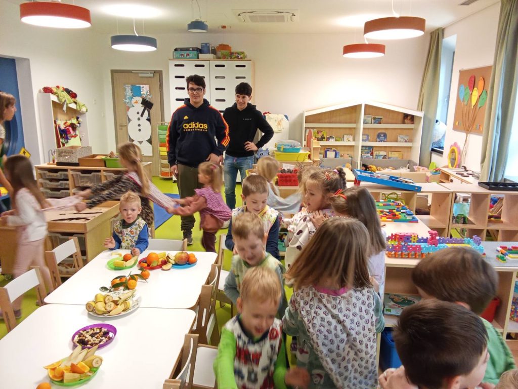 U petak, 12. prosinca naš su vrtić posjetili učenici 3. razreda opće gimnazije iz Gimnazije i strukovne škole Jurja Dobrile.