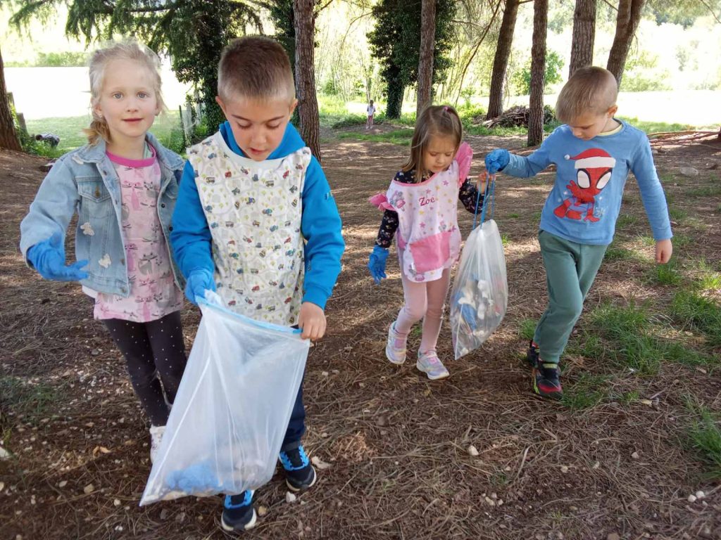 Brboškule i Zvončići iz PV Karojba tu su prigodu iskoristili kao poticaj za mnoge kreativne i istraživačke aktivnosti. Kroz igru su osvježili znanje i o pravilnom odvajanju otpada, a zatim zasukali rukave i očistili dvorište i obližnju šumicu.