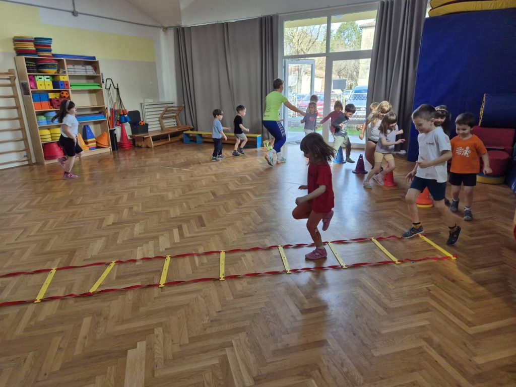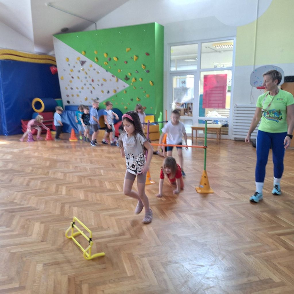Kroz raznolike vježbe i pokretne igre trenerica je djeci demonstrirala nove načine kretanja te ih potaknula na razvoj koordinacije, ravnoteže i motoričkih vještina. Aktivnosti su protekle u veselom i poticajnom ozračju, a djeca su kroz igru, kretanje i zajedničko sudjelovanje stekla nova iskustva i dodatno razvijala radost prema tjelesnoj aktivnosti.