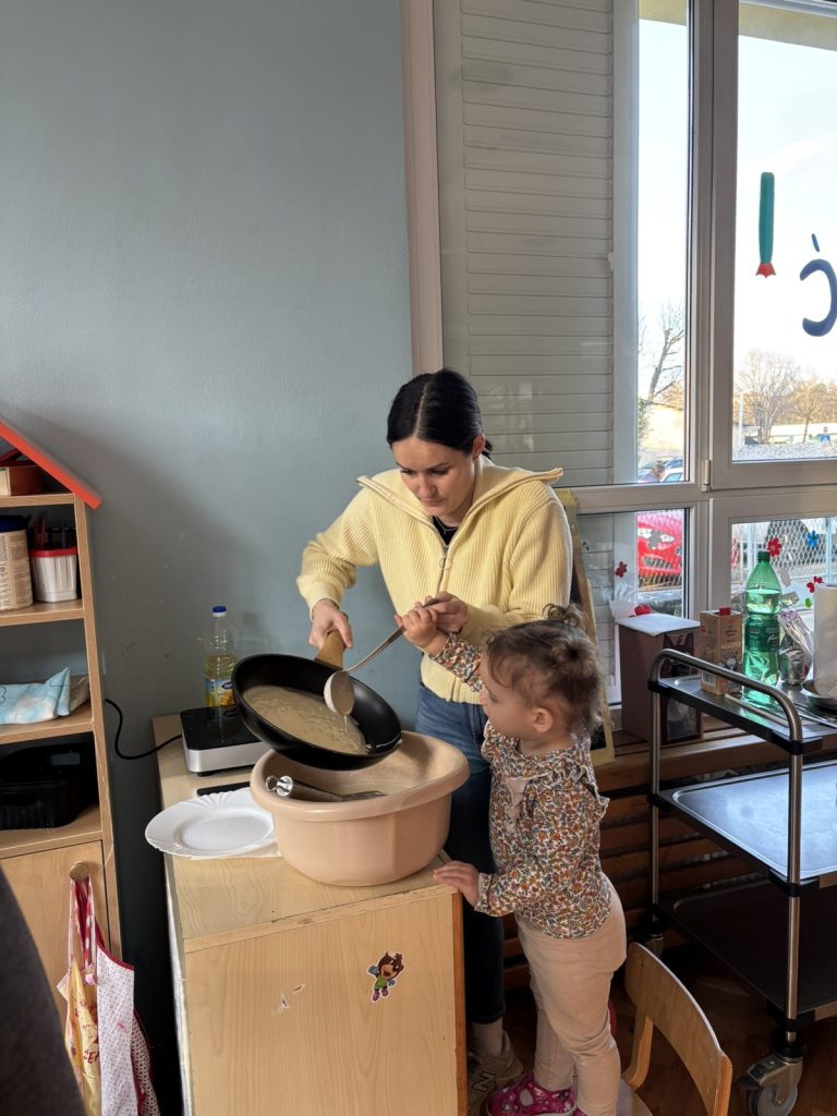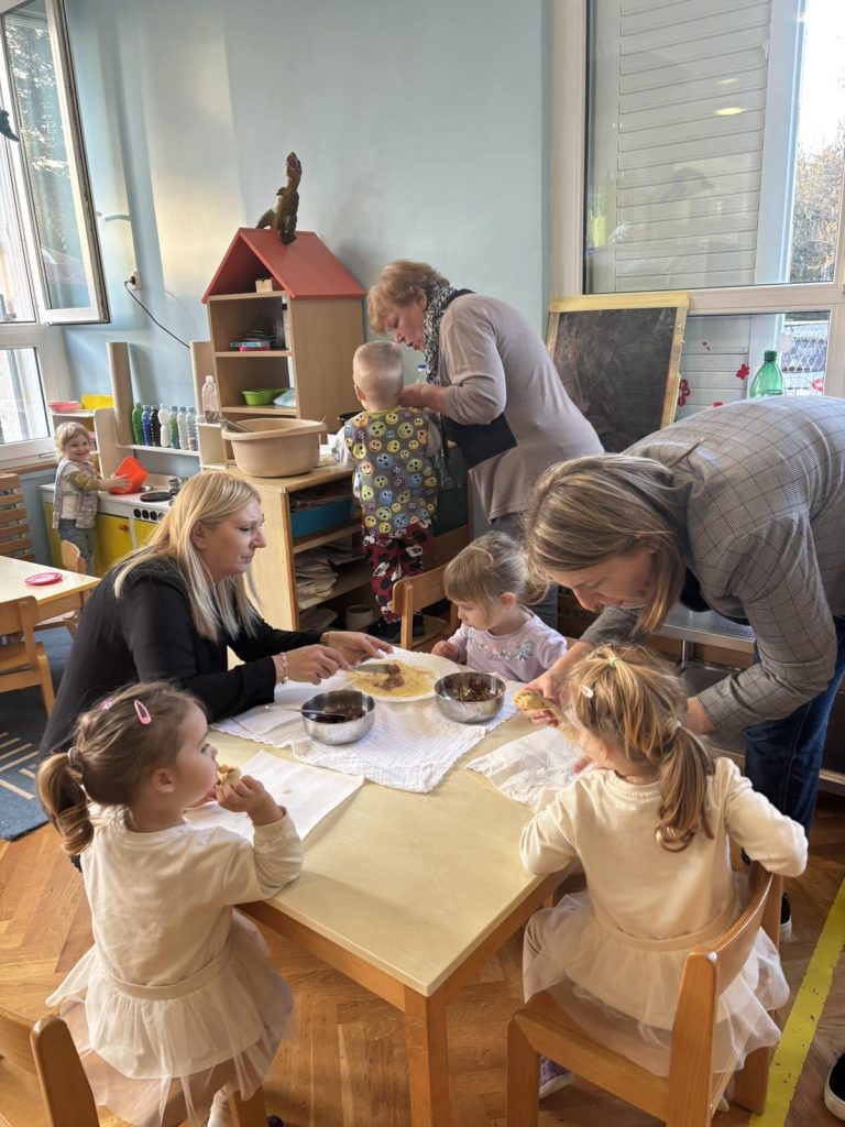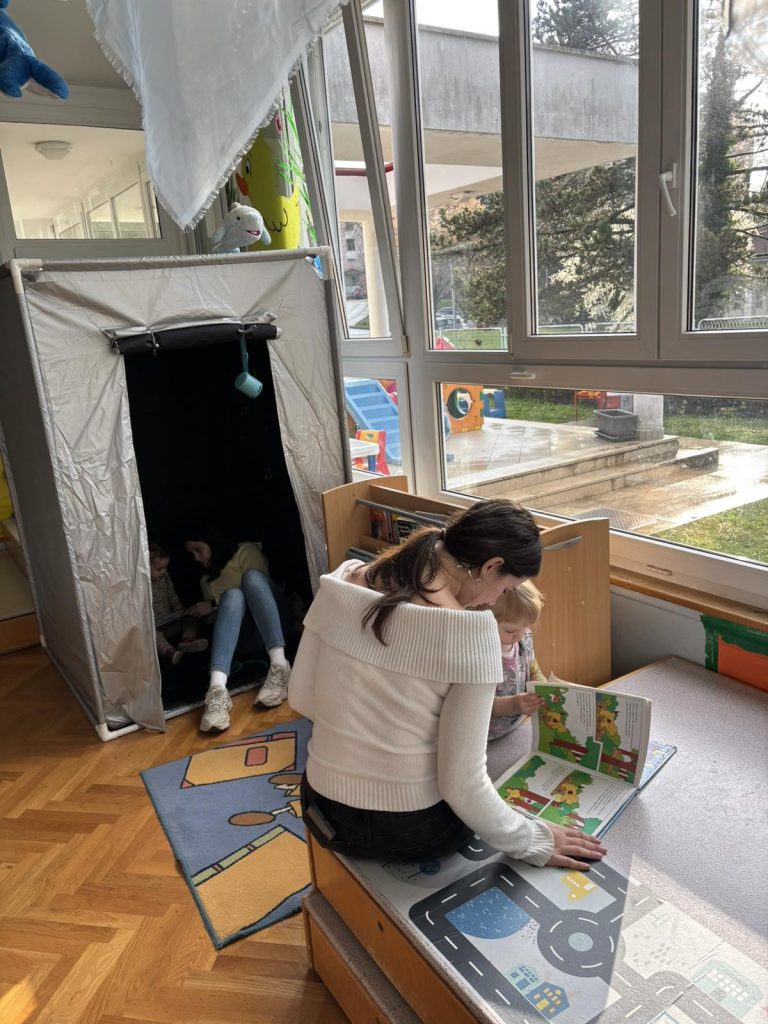 U prostoru su bili pripremljeni različiti centri aktivnosti u kojima su djeca i odrasle osobe sudjelovali kao tim – pripremali su palačinke u maloj kuhinji, zajedno čitali slikovnice u šatoru, gradili različite konstrukcije te stvarali male predstave.