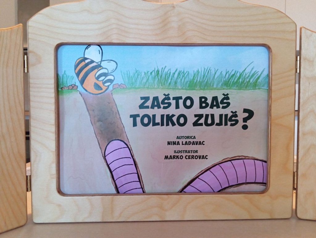 Priča se zove “Zašto baš toliko zujiš?”, a Nina ju je za djecu izvela putem Kamishibai kazališta.