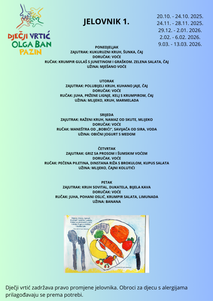 Jelovnici su izrađeni sukladno preporukama Nastavnog zavoda za javno zdravstvo Istarske županije.