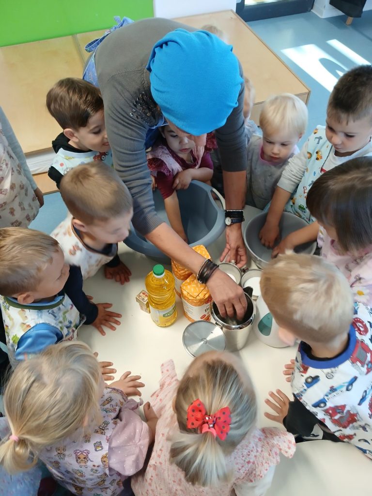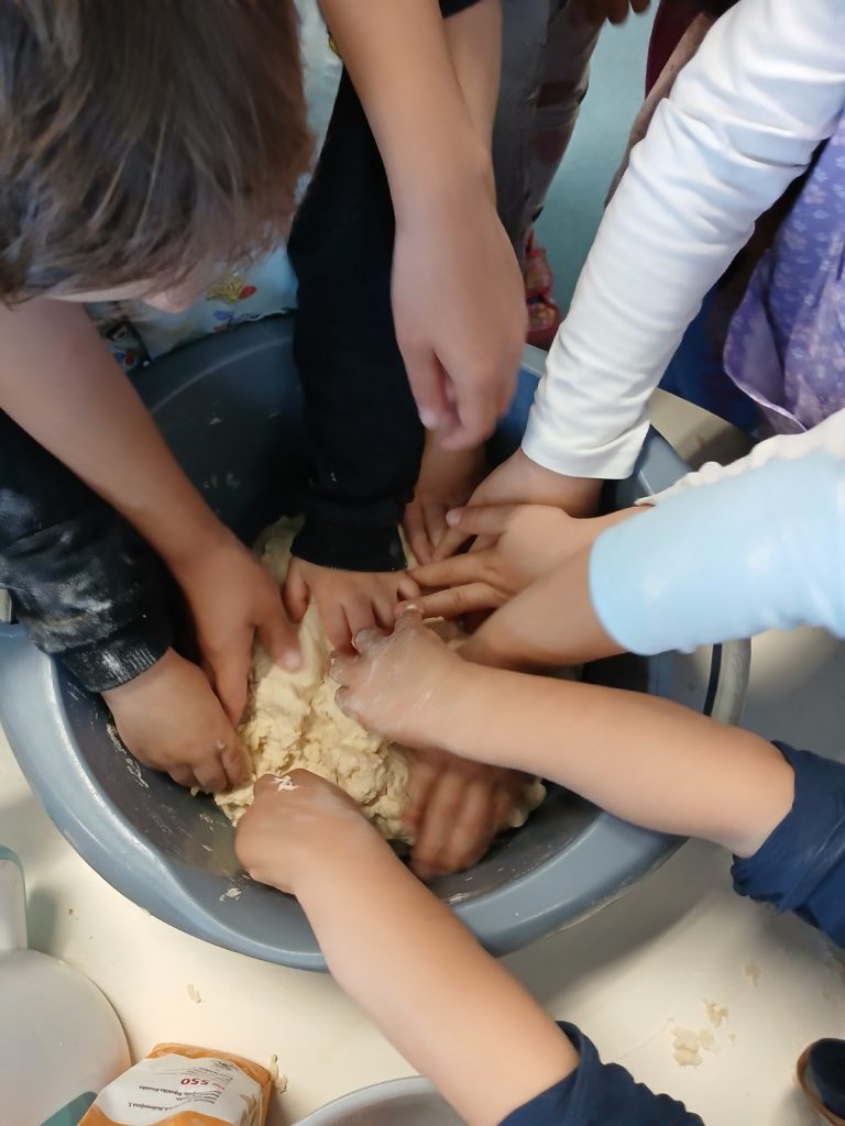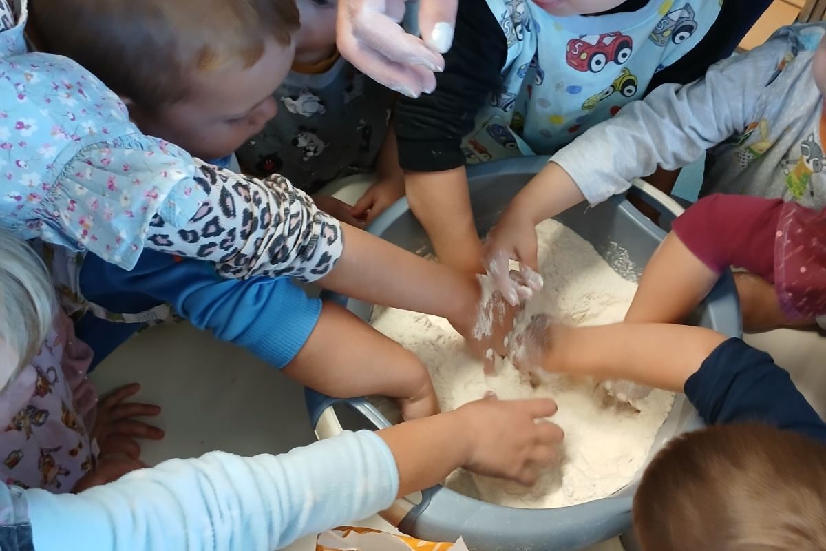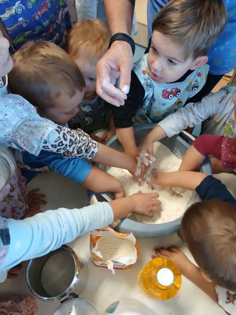 Djeca iz jasličke skupine Pahuljice su zajedno sa svojim odgojiteljicama 16. listopada obilježila Dan kruha. Tim su povodom pozvali baku troje djece iz skupine koja im je vješto pokazivala načine miješenja tijesta i pripreme domaćeg kruha. U pomoć su uskočila i djeca iz susjedne skupine Žirafice. Pogledajte te male vrijedne ručice 🙂