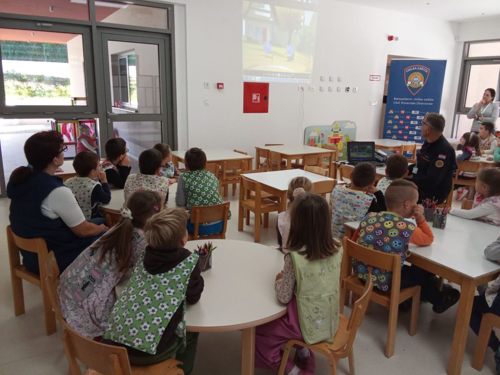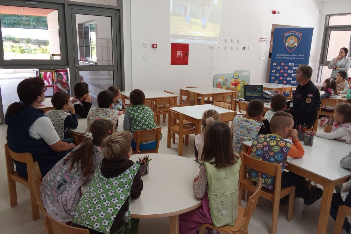 U srijedu 15. listopada matični vrtić u Pazinu i Područni vrtić Veli Jože posjetili su pazinski djelatnici Sustava civilne zaštite. Za djecu su pripremili edukativnu radionicu o zaštiti i spašavanju ljudi, životinja, materijalnih i kulturnih dobara u velikim nesrećama i katastrofama. Djeca su se i sama aktivno uključivala u razgovor i raspravu te postavljali pitanja. Hvala voditeljima radionice na vrlo važnoj i poučnoj temi!